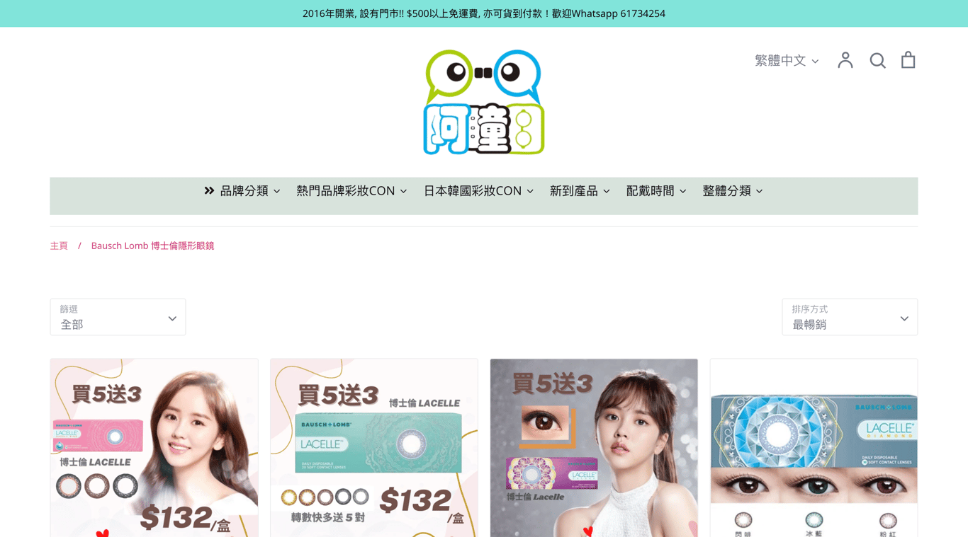 在阿瞳目隱形眼鏡專門店購買博士倫隱形眼鏡,不僅價格實惠,而且訂購數量越多,優惠越多。凡購買滿$500,更可享全港免運費及送貨服務。