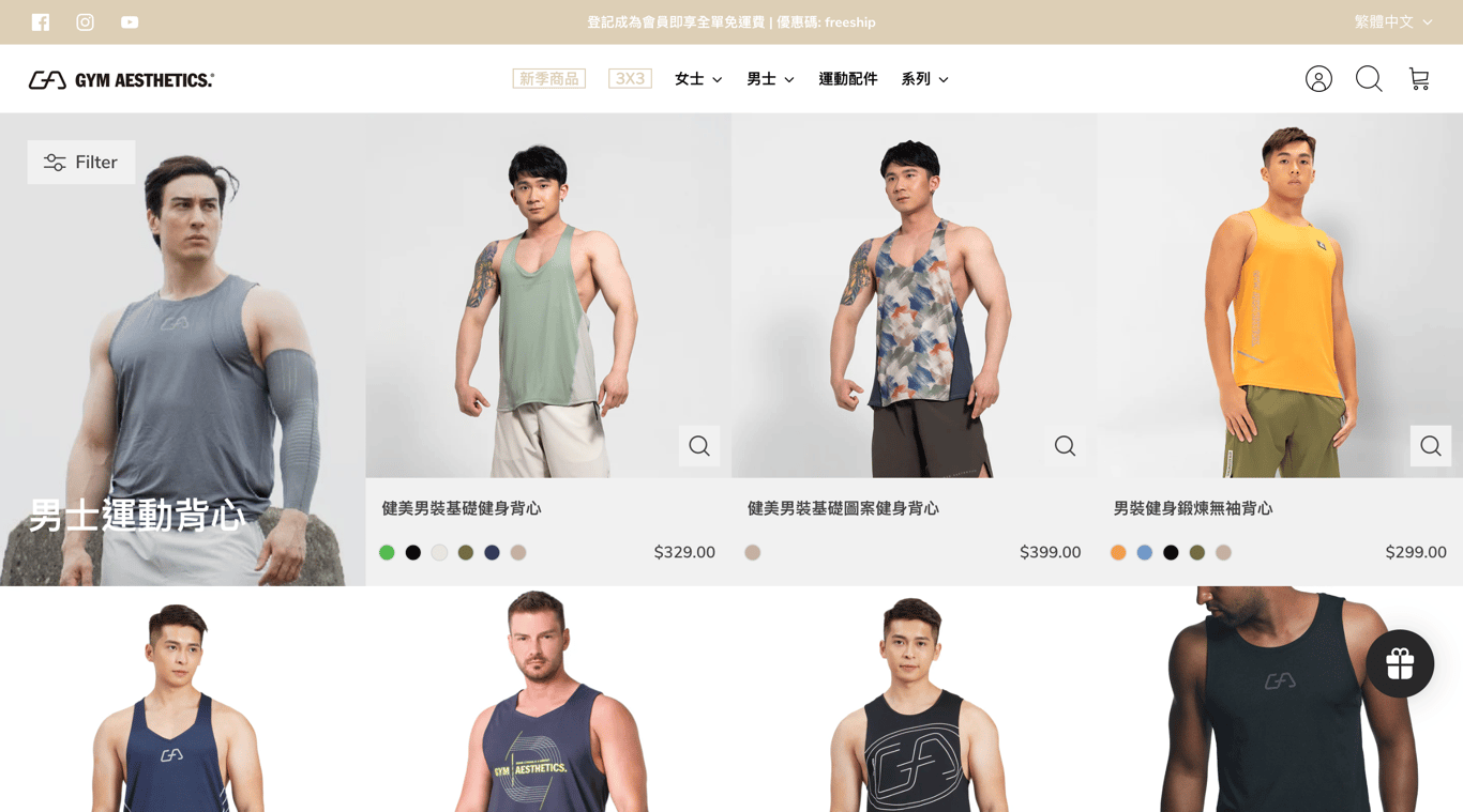 立即訪問Gym Aesthetics Asia的官方網站,探索更多款式,並利用會員獨享的免運費優惠,選購一件合身的運動背心,讓您的每一次運動都充滿動力和風格。